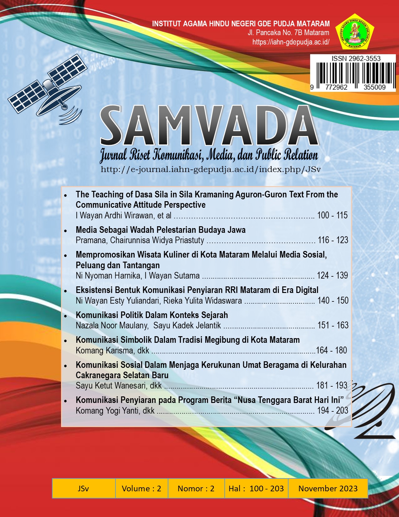 | Samvada: Jurnal Riset Komunikasi, Media, Dan Public Relation|